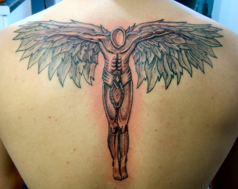 Male Angel Tattoo On Back