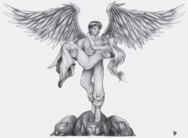 Male Angel With Angel Girl Tattoo Design