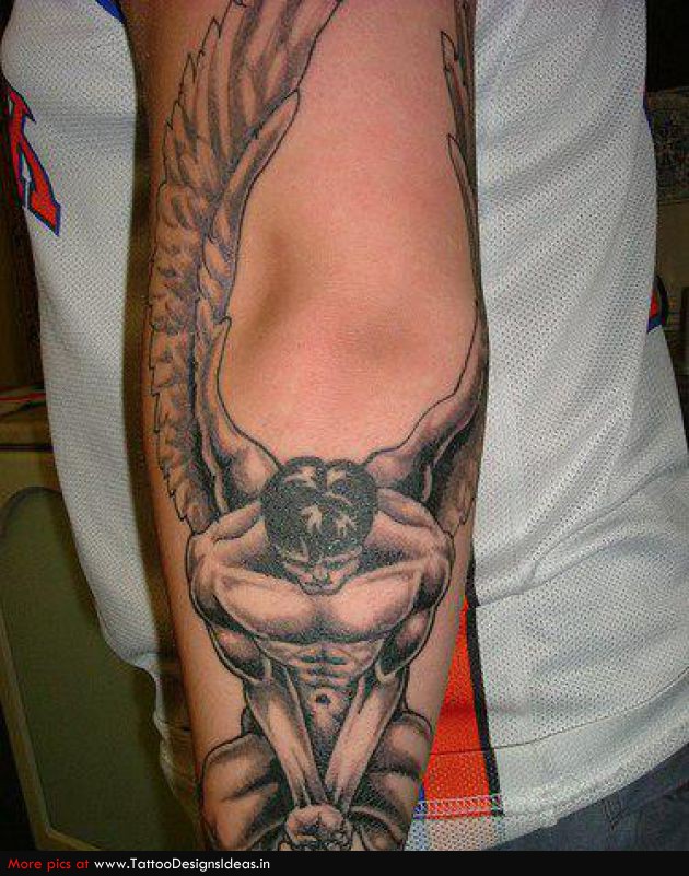 Male Fallen Angel Tattoo On Sleeve