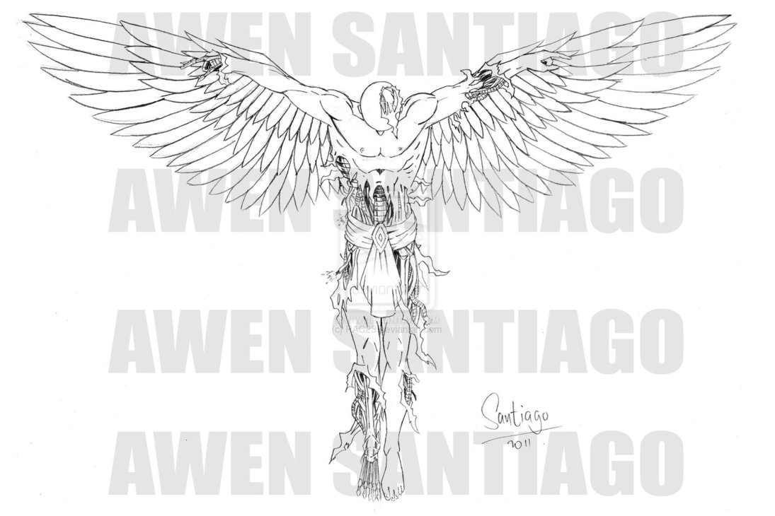 Open Wings Male Angel Tattoo