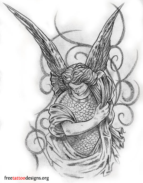 Male Angel Flying Tattoo Design