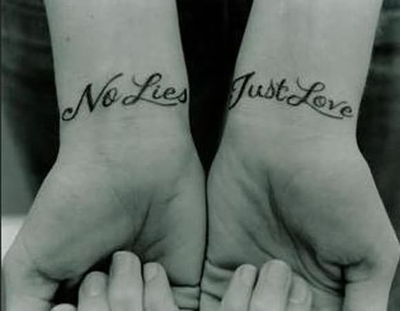 No Lies Just Love Couple Tattoo On Wrists