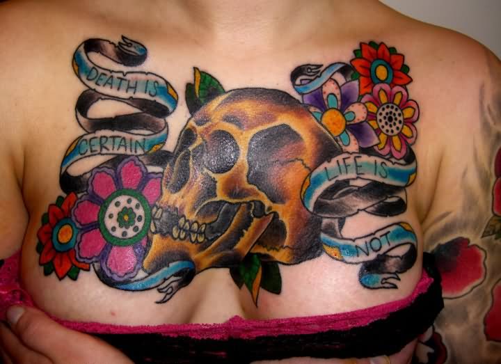 3D Skull And Day Of Dead Tattoo On Sleeve