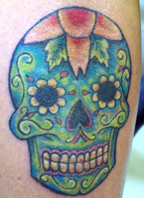 Mexican Skull Day Of The Dead Tattoo On Leg