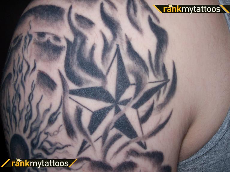Fire n Flame With Nautical Star Tattoo