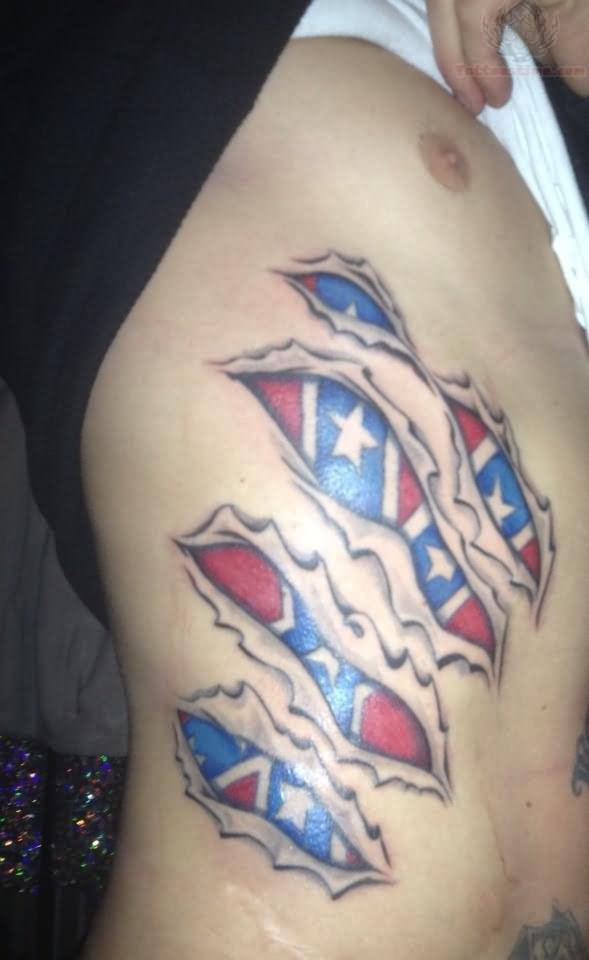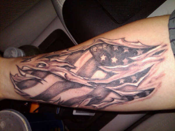 Torn Ripped Skin Flag Tattoo
