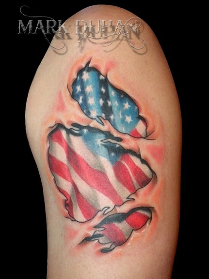 Awesome Ripped SKin American Flag Tattoo