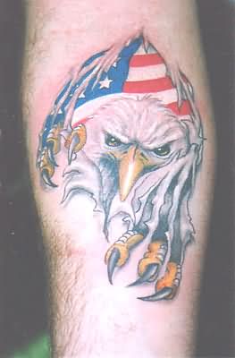 Ripped Skin Eagle And American Flag Tattoo