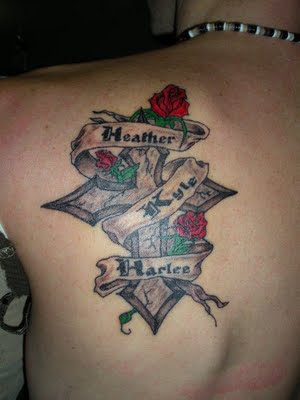 Cross and Banner With Red Roses Tattoo