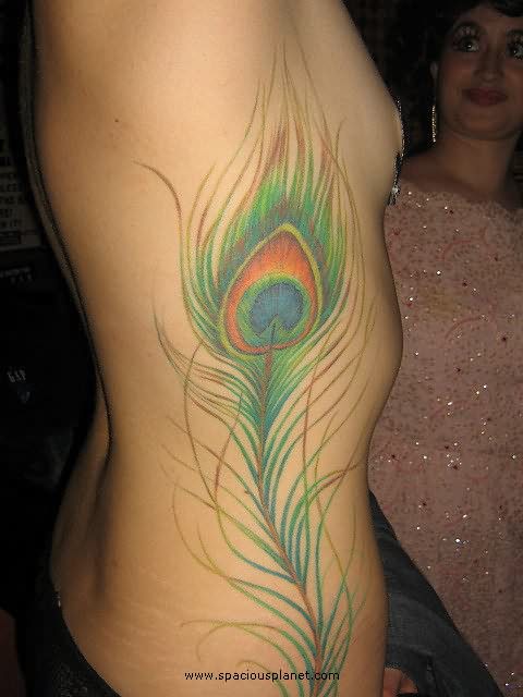 Peacock Feather Tattoo On Rib