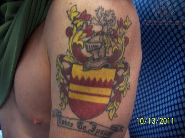 Grey Ink Medical Symbol Tattoo On Right Shoulder