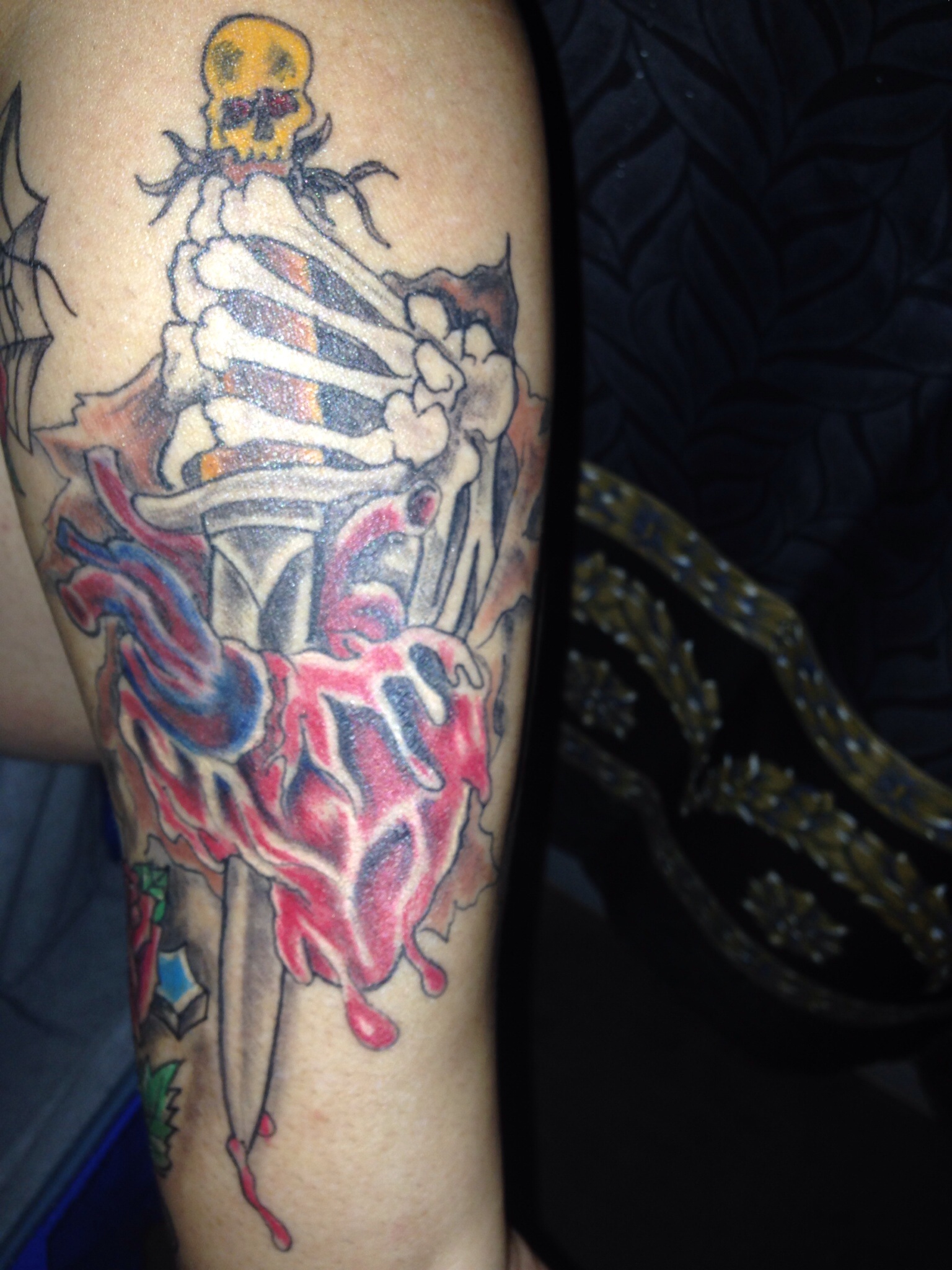 Colored Death Grim Reaper Tattoo On Left Half Sleeve