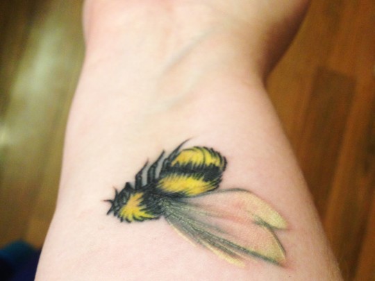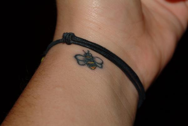 Yellow Bee Tattoo On Wrist