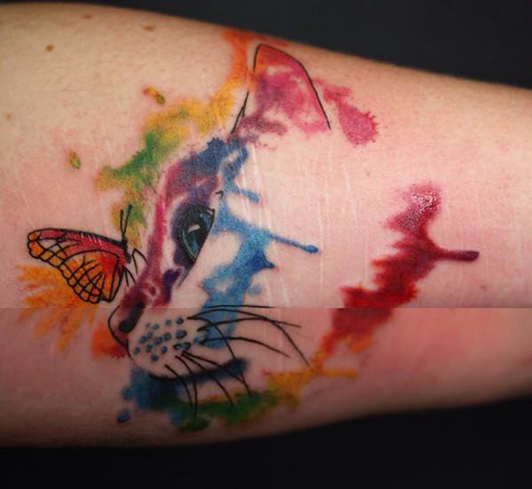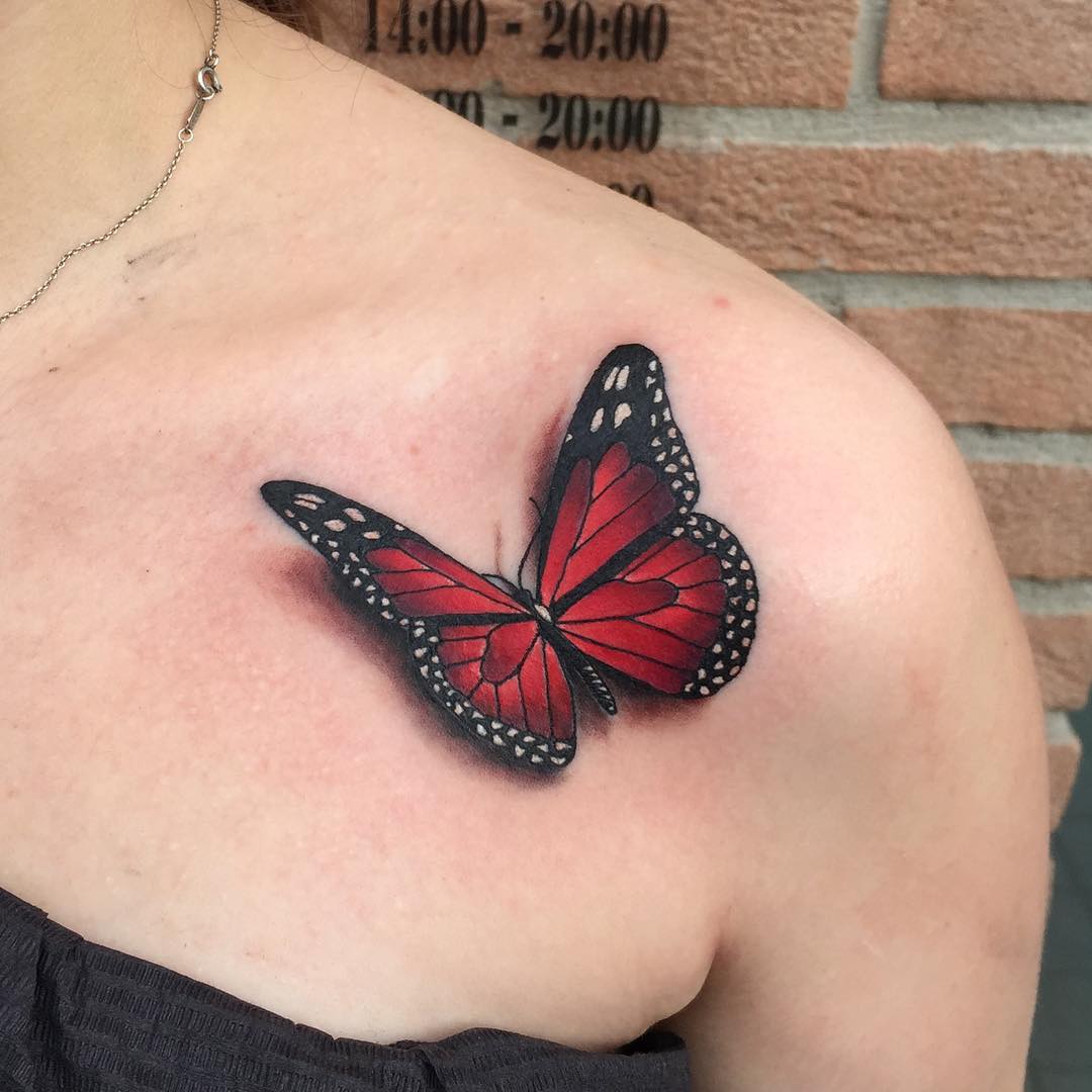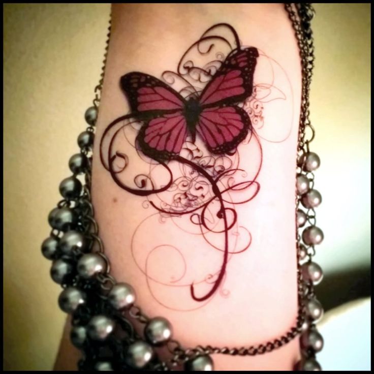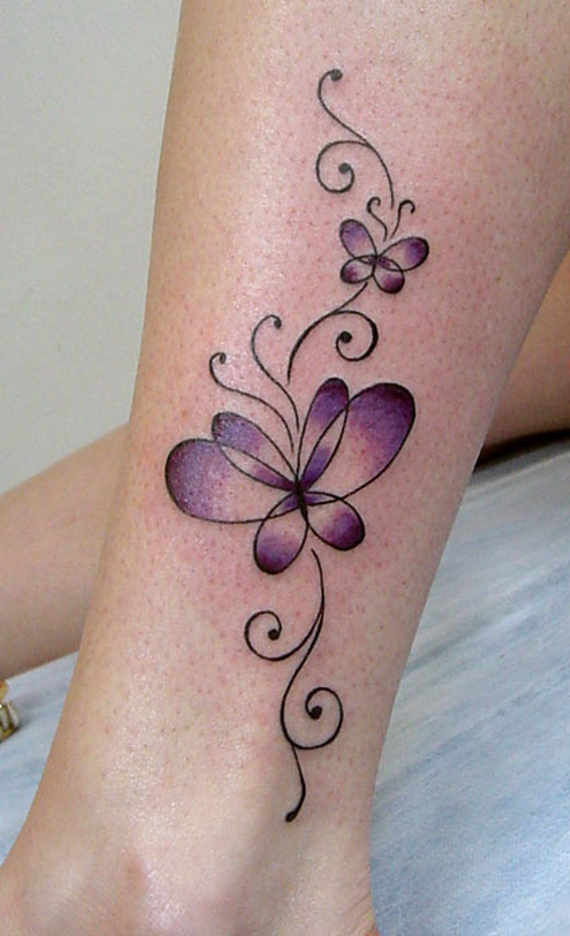 Colorful Butterflies And Rose flower Tattoo On Leg
