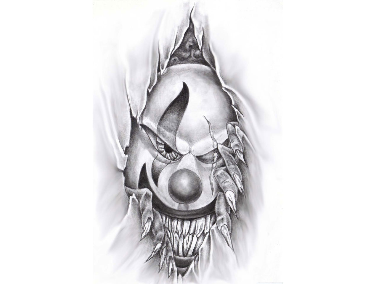 Ripped Skin Evil Clown Tattoo Design