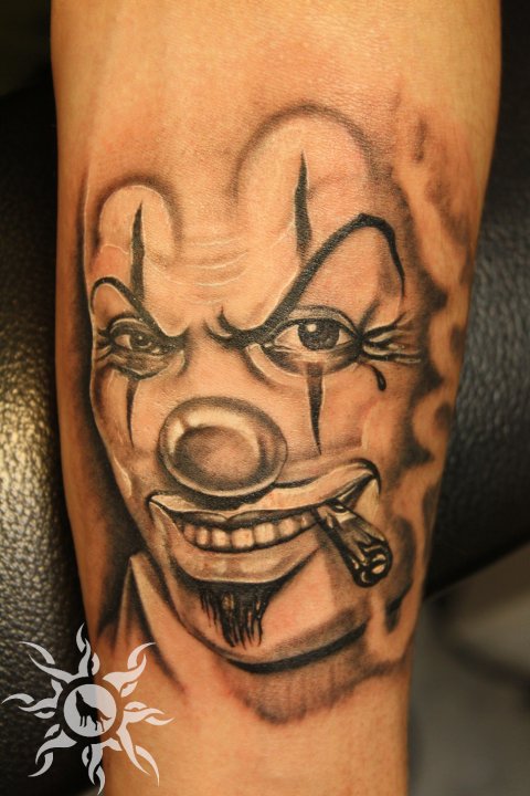 Smoking Clown Head Tattoo