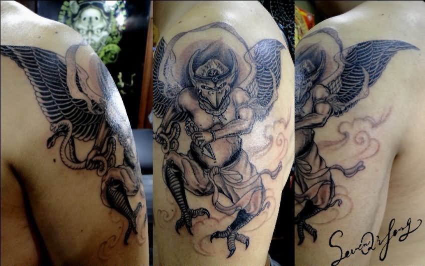 Traditional Demon Tattoo On Shoulder For Men