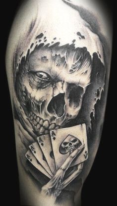 Demon Skull With Cards Tattoo Design