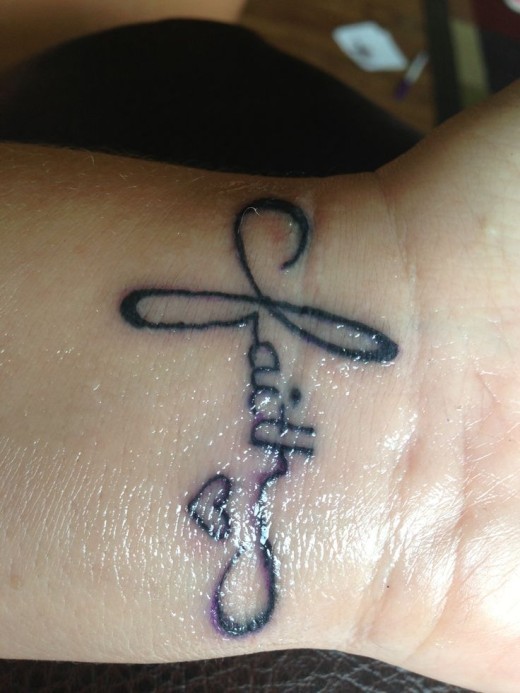 Faith Text With heart Tattoo On Wrist