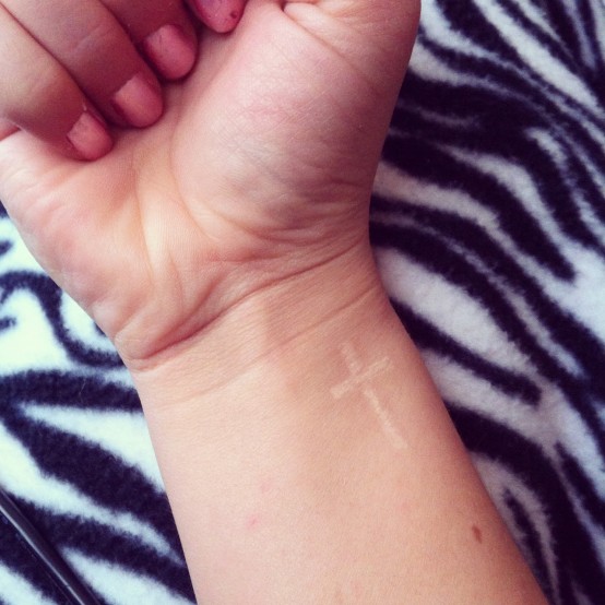 White ink Simple Cross Faith Tattoo