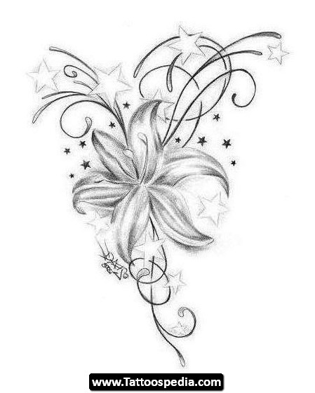 Stars And Lily Flower Tattoo Sample
