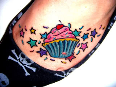 Colored Stars And Cup Cake Foot Tattoo