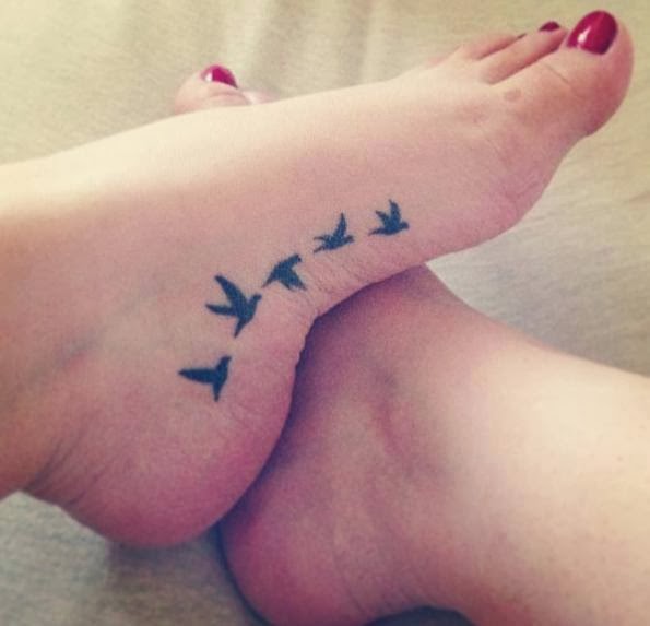 Flying Birds Foot Tattoo For Girls