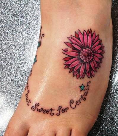 Quote and Flower Foot Tattoo