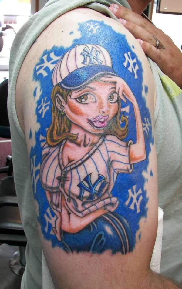 Yankee Pin Up Girl Tattoo On Half Sleeve