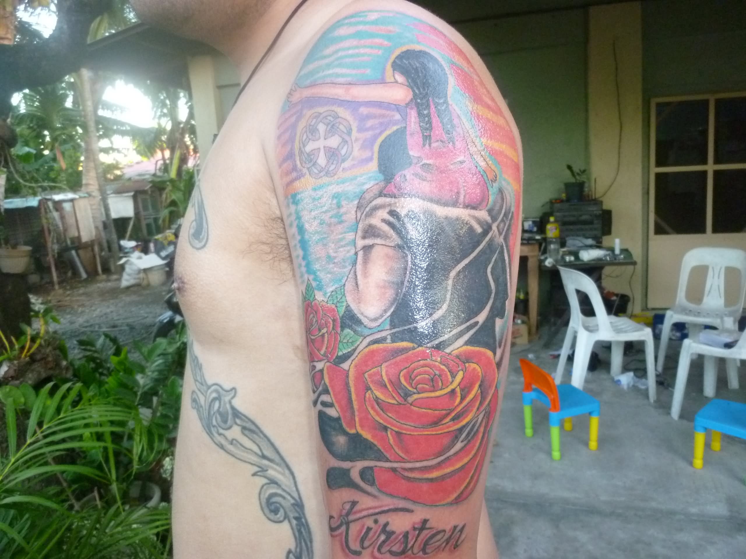 Rose Flowers Half Sleeve Tattoo For Men