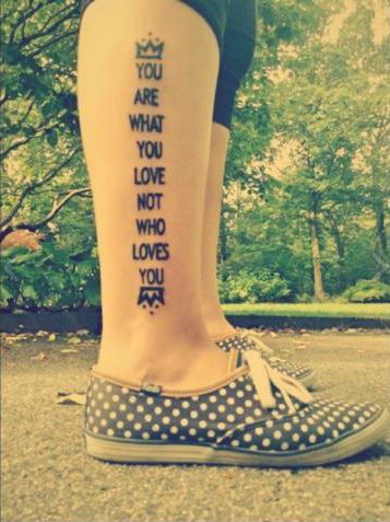 You Are What You Love Not Who Loves You – Fall Out Boy Tattoo On Leg