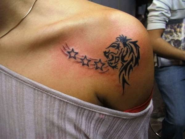 Tribal Leo Tattoo With Stars For Girls