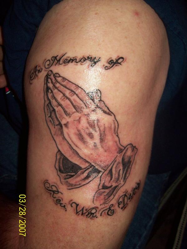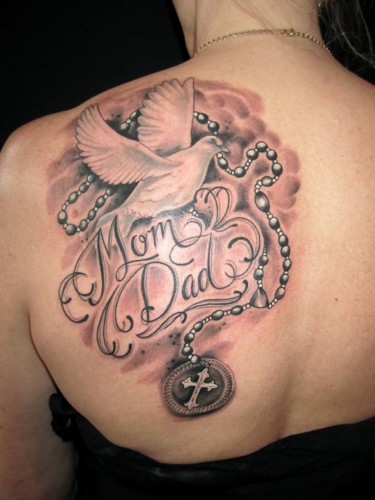 In Loving Memory Of Dad Memorial Tattoo On Shoulder