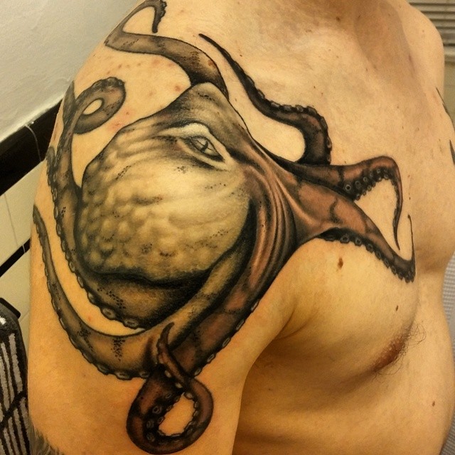 Right Shoulder Octopus Tattoo For Men