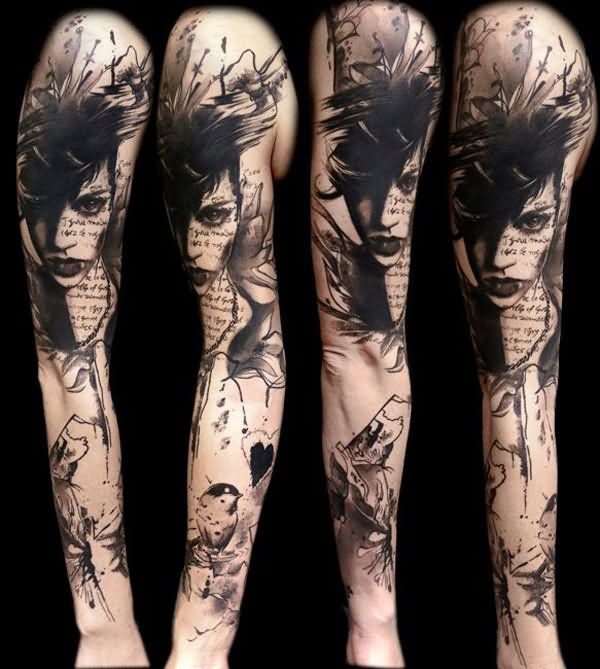 Grey Angel Sleeve Tattoo Design by Niki Norberg