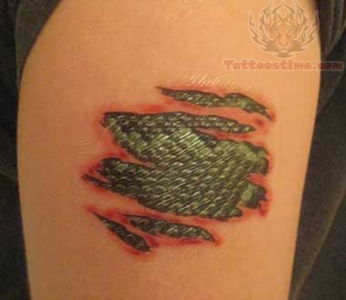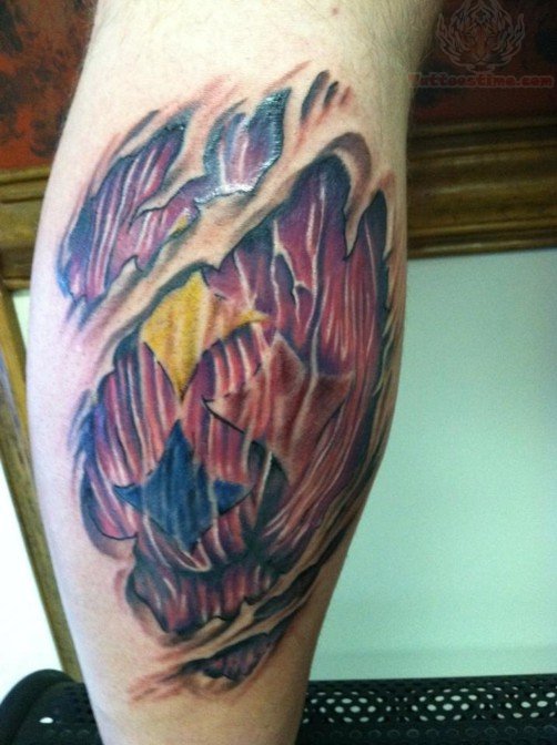Torn Skin Muscles With Steelers Logo Tattoo On Calf