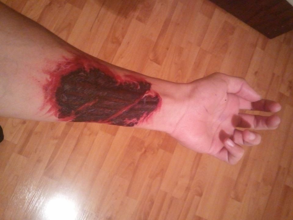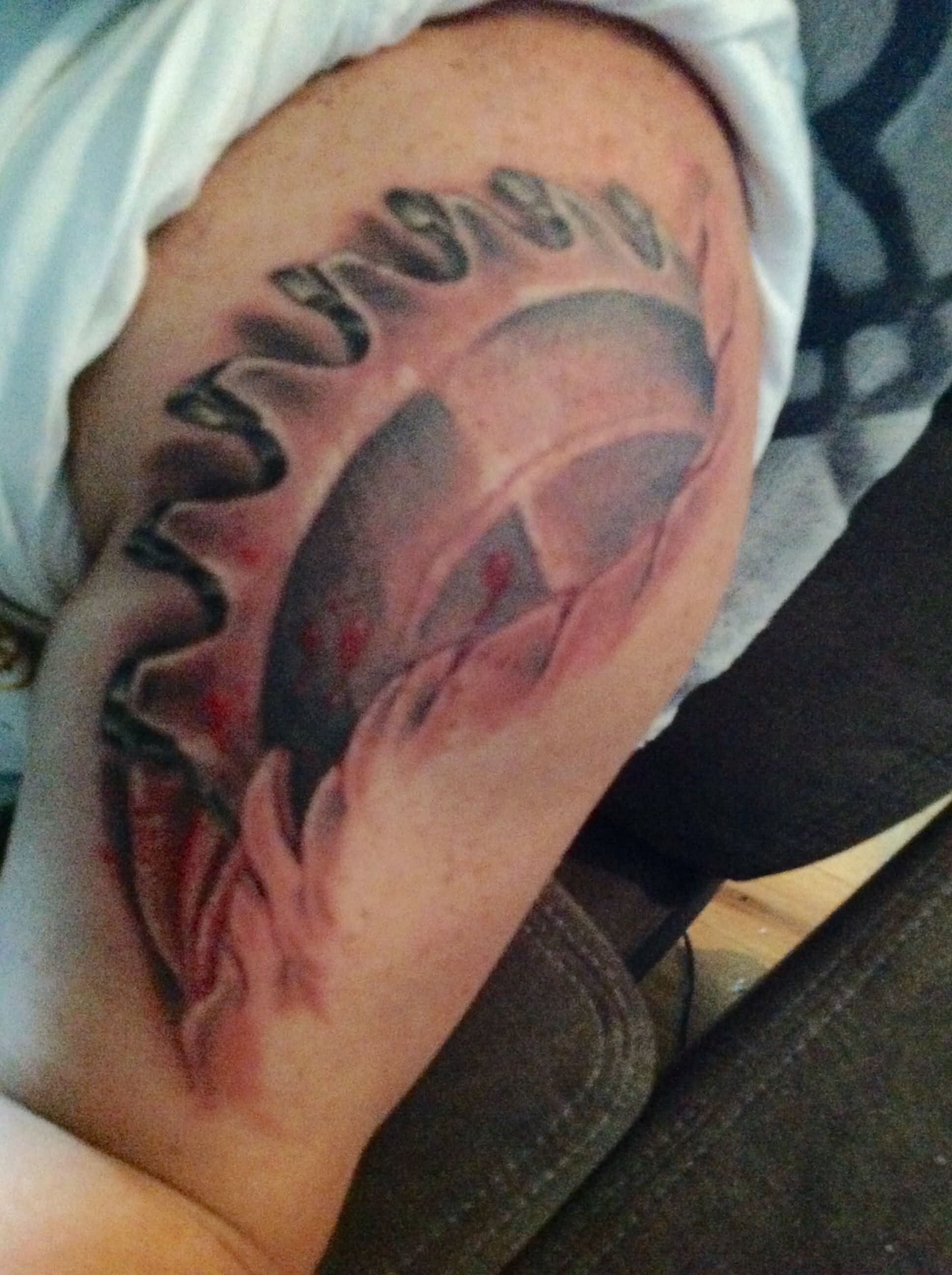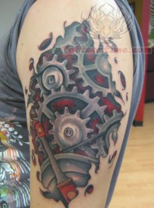 Ripped Skin Saw Blade Tattoo On Half Sleeve