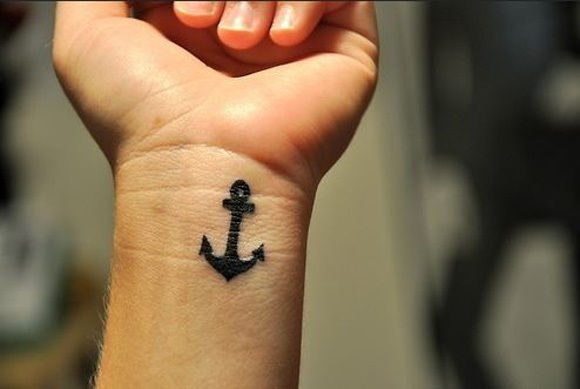 Small Black Anchor Wrist Tattoo Idea