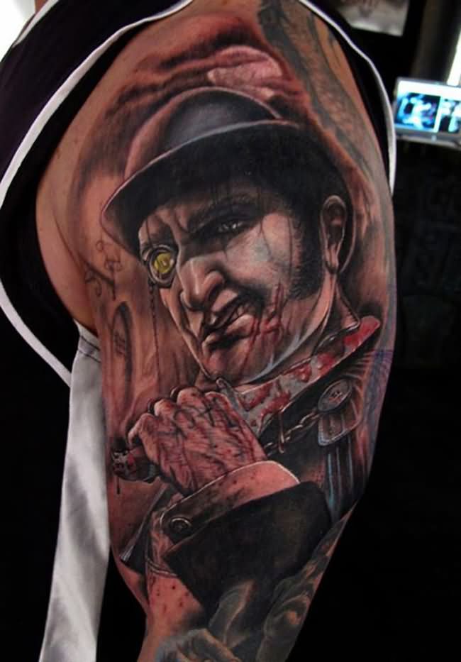 Wonderful Left Half Sleeve Zombie Tattoo