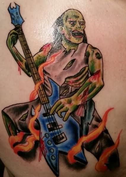 Colored Zombie Bass Player Tattoo