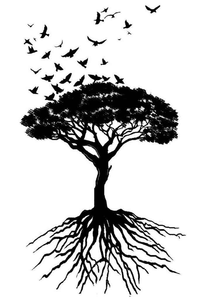 Flying Birds And Tree Tattoo Design Sample