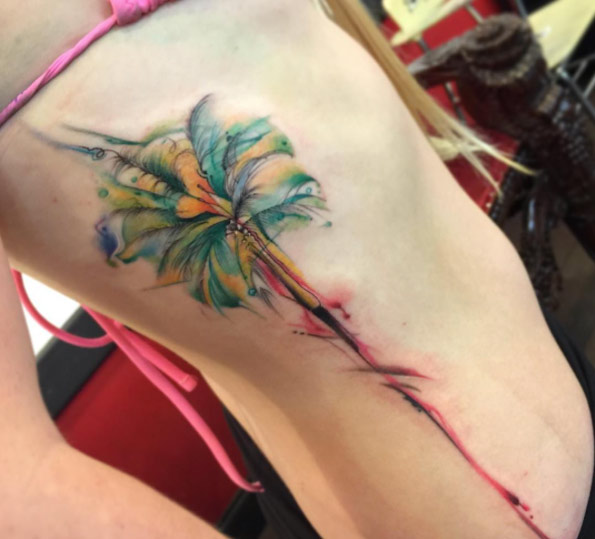 Side Rib Flower Watercolor Tattoo