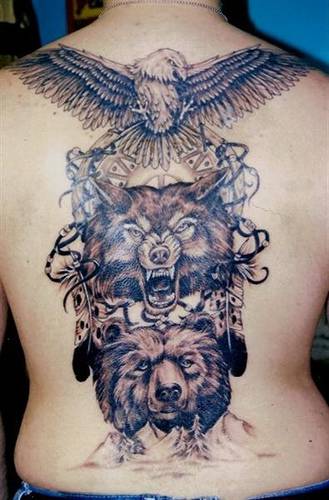 Eagle, Wolf And Bear Head Tattoos On Shoulder