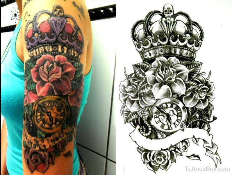 Left Half Sleeve Crown Tattoo Idea For Girls