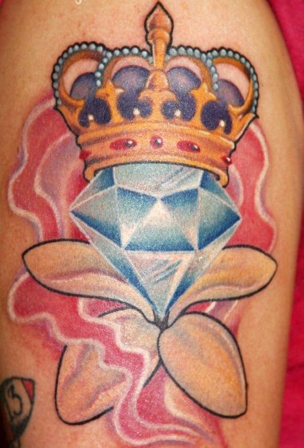 Nice Diamond And Crown Tattoo Idea